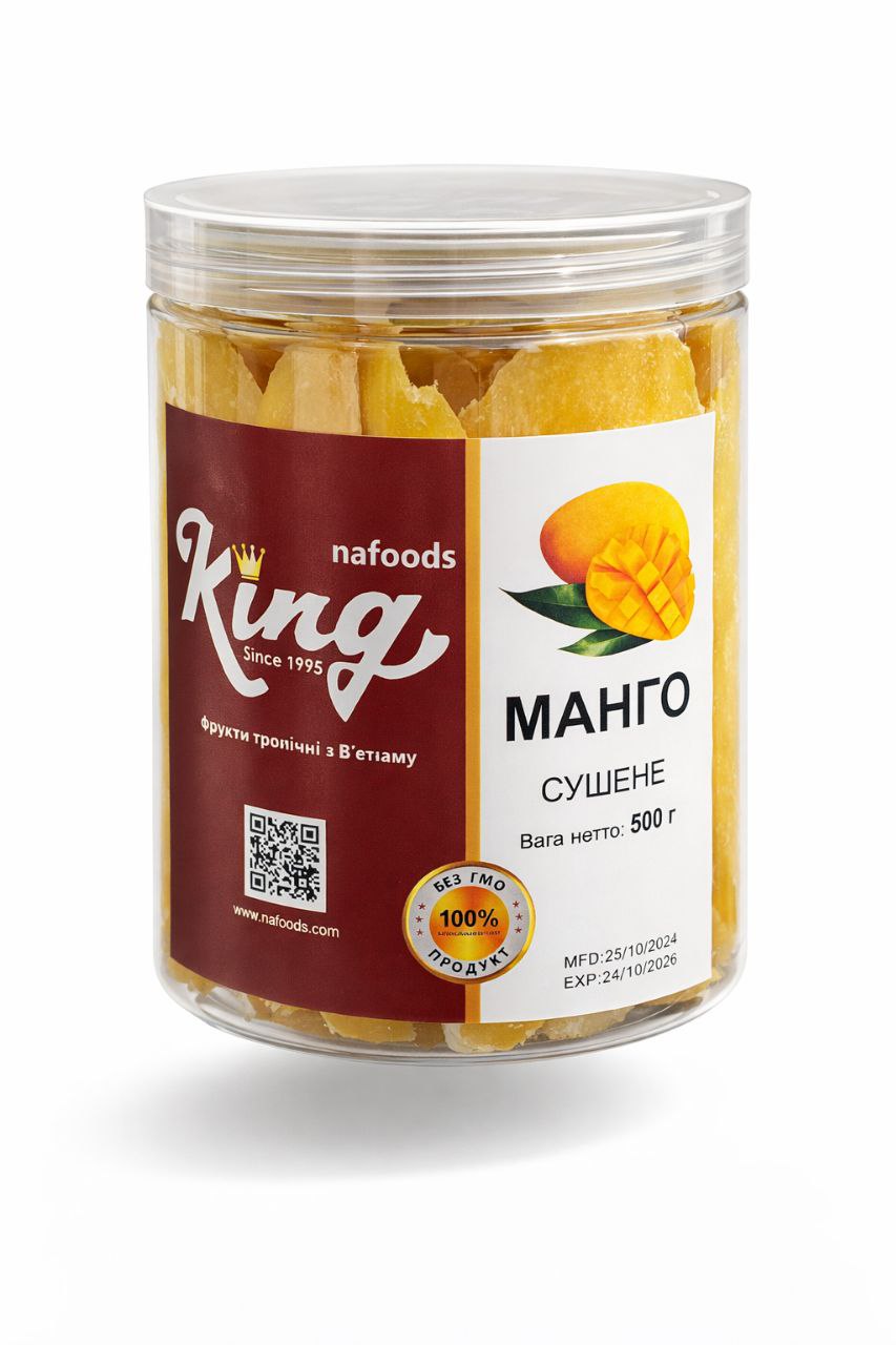 Натуральний манго – це натуральний в’ялений манго без цукру! Сухофрукт є справжнім джерелом вітамінів: у його складі присутні практично всі вітаміни групи В, C, D і A. Крім того, в ньому присутні 12 видів амінокислот, кальцій, каротин, залізо, фосфор і багато інших. Цукор представлений у цьому продукті натуральною речовиною – фруктозою. В’ялений манго, користь якого обумовлюється його насиченим складом, має низку цінних якостей. Цей екзотичний сухофрукт за регулярного вживання нормалізує роботу органів травлення, позитивно впливає на речовинний обмін, очищає організм від токсинів, запобігає появі серцево-судинних захворювань. Манго використовується під час приготування всіляких страв і десертів. Крім того, сухофрукт стане прекрасною самостійною закускою.